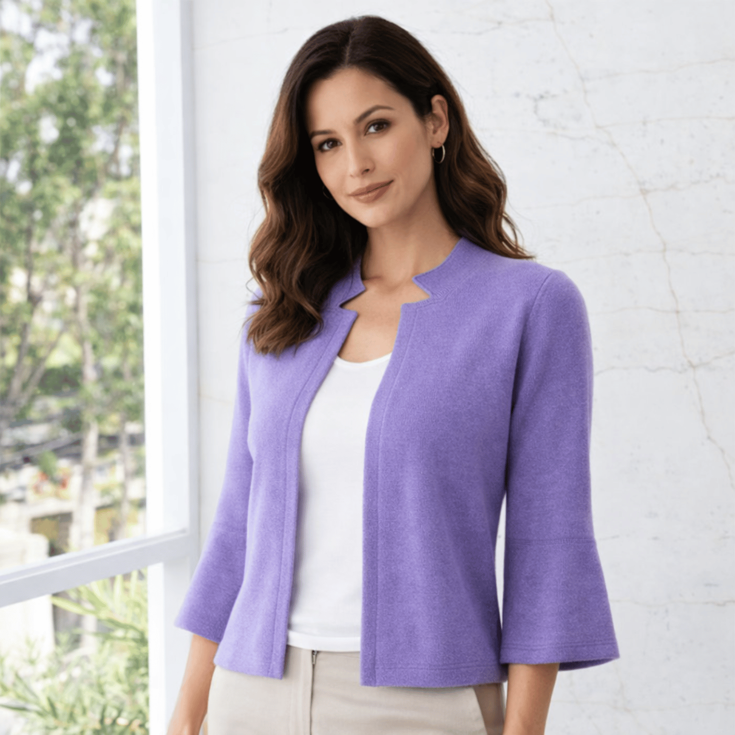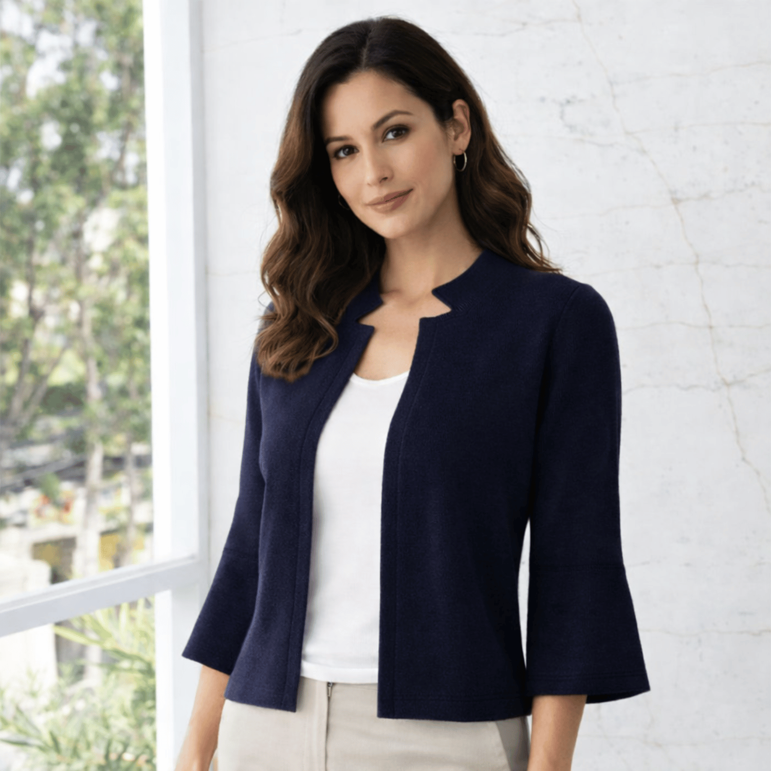 🧵 Estilo: Cardigan abierto, manga campana