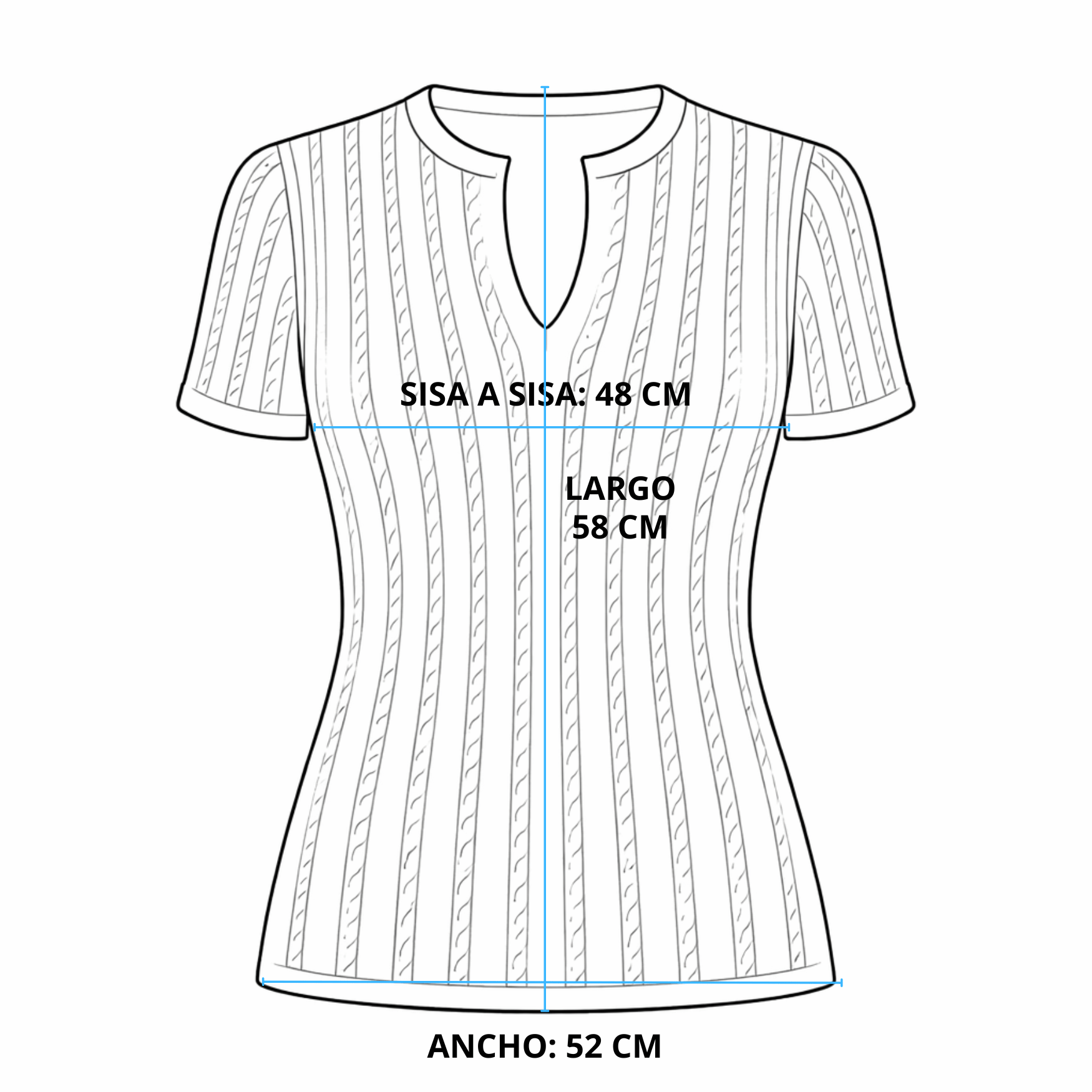 Nuestro top tejido en 100% algodón pima peruano combina suavidad superior, frescura natural y una textura sofisticada con trenzas verticales que estilizan la silueta.